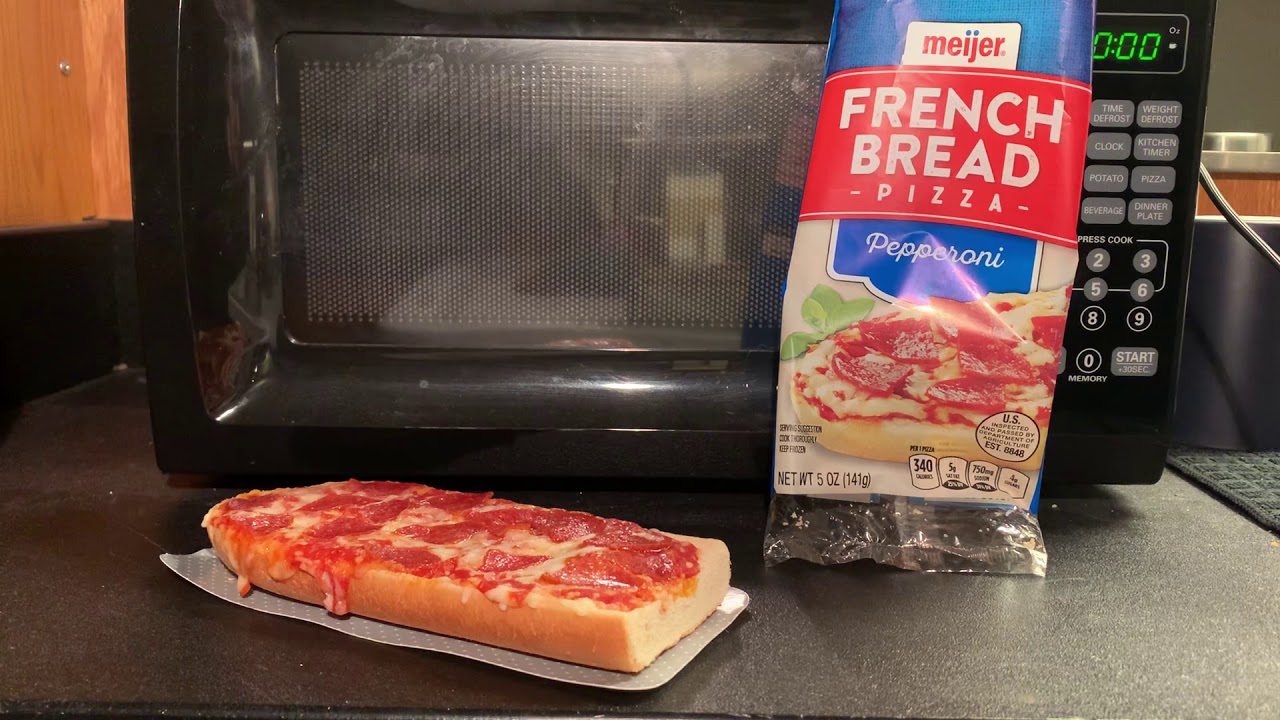 Today we will be reviewing a Meijer brand French Bread Pizza with Pepperoni. You can find them in the frozen section of Meijer grocery stores for only $1.00. If you don’t have a local Meijer then other grocery chains should have something similar.