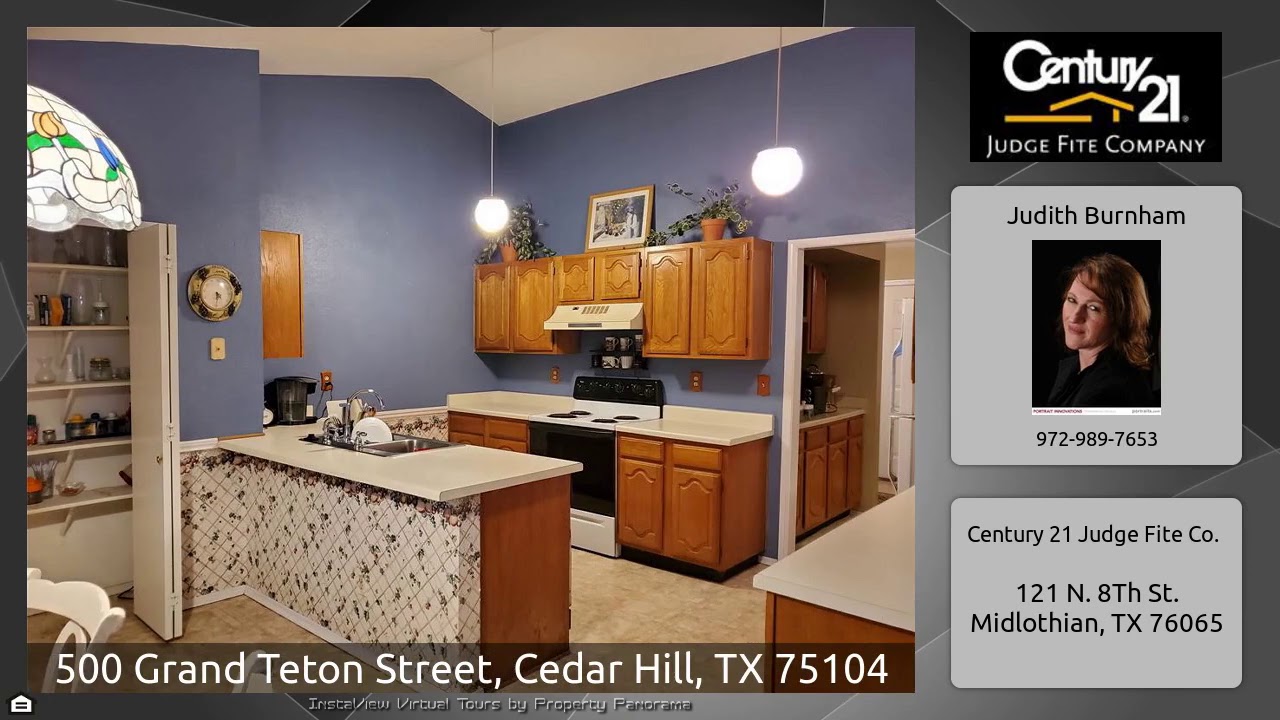 The Virtual Tour for the property at 500 Grand Teton Street, Cedar Hill, TX 75104 listed for $179,997: Other homes for sale by Judith Burnham of Century 21 Judge Fite Co.: Multiple Offers:Deadline Sun,Feb 21, 6pm Huge corner lot with mature trees! Backyard boasts lots of crepe myrtle trees, privacy fence, gazebo. Floor plan has a formal dining room, extended living room or open office area. Living area open with wood burning fireplace, brick sitting area & mantle. Kitchen has a generous amount of cabinets high & low. Breakfast area has French doors that open to back yard. Formal dining area …