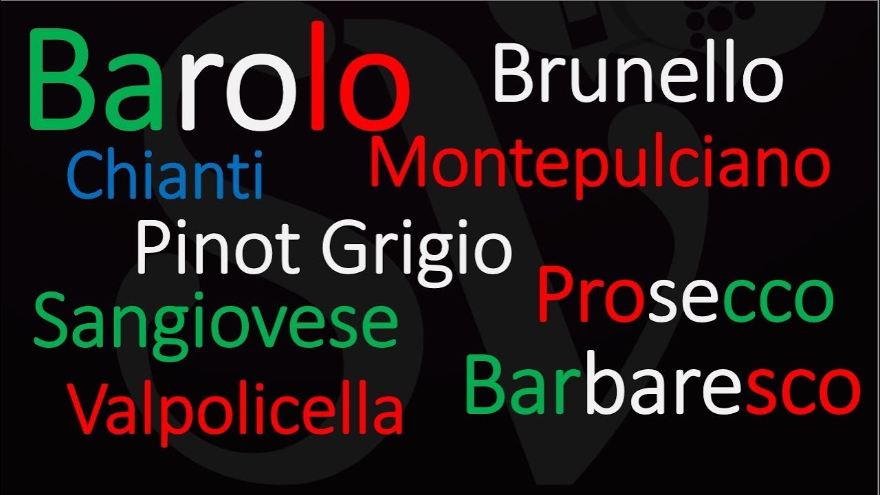 Listen & learn how to say the 10 most important words in Italy when it comes to wine: Carolo, Barbaresco, Nebbbiolo, Chianti, Sangiovese, pinot Grigio, Prosecco (Conegliano valdobbiadene), Valpolicella (Amarone), Montepulciano d’Abruzzo), and Brunello di montalcino with the typical genuine Italian pronunciation.