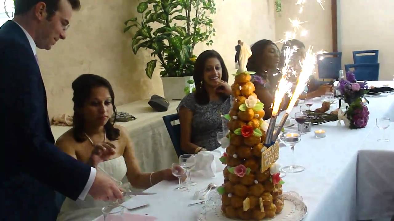This is how the French do their wedding cake – kind of a version of the krispy kreme donut cake only with profiteroles (cream puffs) and fireworks! What a deal! CakeFranceFrenchFrench GourmetgourmetVideoVlogweddingYouTube