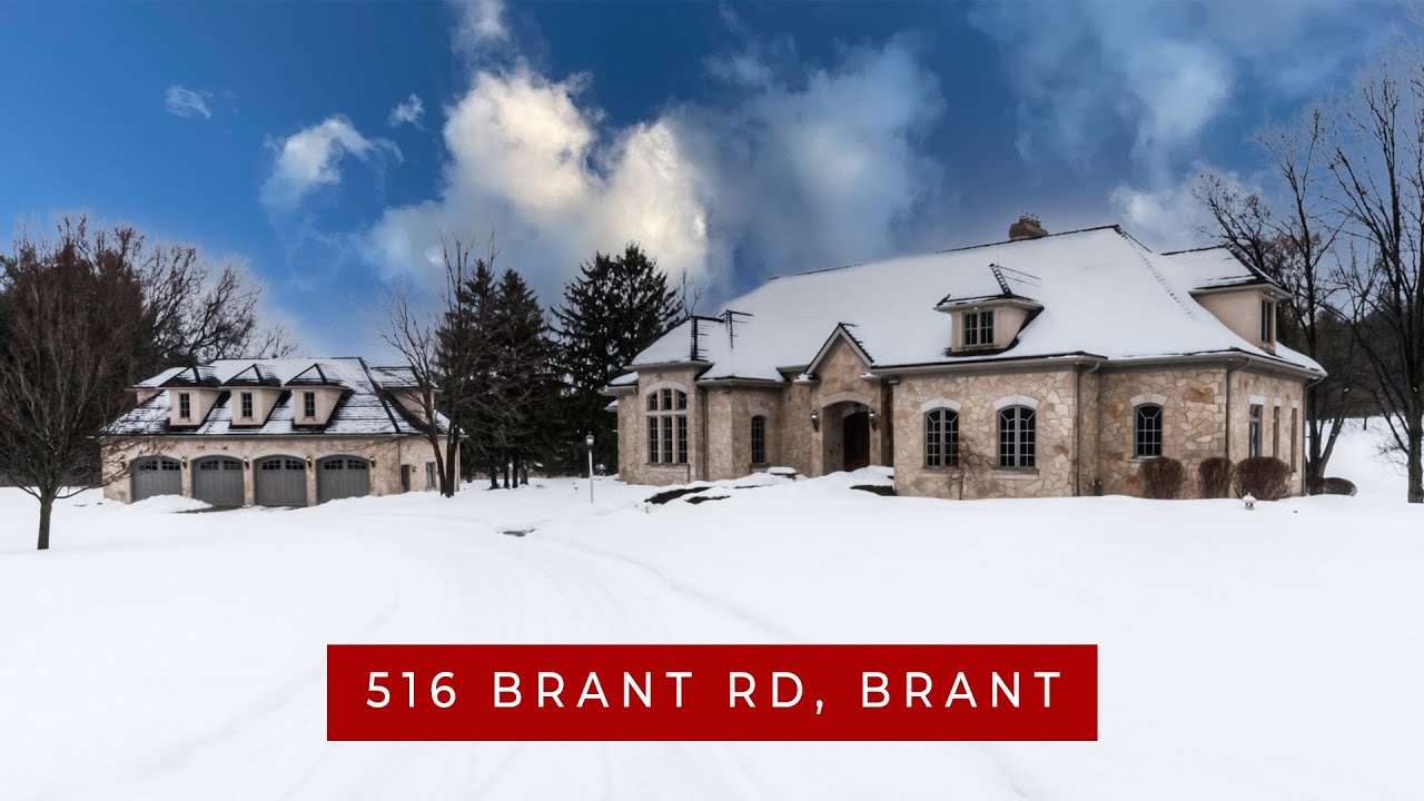 EXTRAORDINARY CUSTOM BUILT HOME SITUATED ON A PRIVATE ENCLAVE OF 10.7 ACRES. An impressive and picturesque property, professionally designed and landscaped with gated entrance leading to the stunning French Chateau inspired home. Hand chiselled limestone exterior, cedar shake roof, 4- bay detached garage and coach house- it is definitely one of a kind! Step into the grand foyer, and focus your attention on the great room with 20 ft vaulted ceiling, stone fireplace and floor to ceiling windows providing panoramic views of nature at it’s finest. The Great Room leads to a gourmet Chef’s kitchen featuring fine craftsmanship, high-end built-in appliances, granite countertops, natural stone backsplash and oversized island with raised breakfast bar. French doors lead to a flagstone patio, with views of the 2 spring fed ponds with waterfall and water fountain. The main floor master bedroom features a 10 ft double tray ceiling, walk-in closet, and a luxurious 5-piece ensuite. Completing the main floor is an office with built-in cabinetry, an elegant dining room and laundry room. The second floor offers 2 over-sized bedrooms and 2 bathrooms. The fully finished lower level offers a large family room with 10 ft ceiling, custom wood-crafted Wet Bar, built in media center, double-sided stone fireplace, a separate games room and 3 piece bath. In addition, the Coach House with a 2-piece bathroom, heating and cooling offers potential for a live-in suite. This well crafted , unique home is conveniently located on Hwy 24 between Cambridge and Brantford. Truly a stunning home in one of the most tranquil settings in the area! Book your showing today!