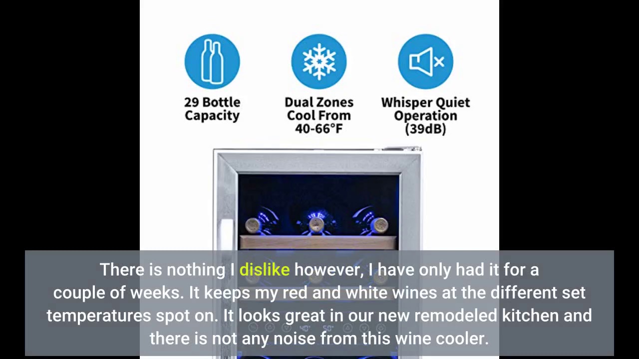 Have had it cooling for about 3 weeks now and couldnt be happier. It is quiet and keeps the wine to the set temperature within about 1 degree on both sides.