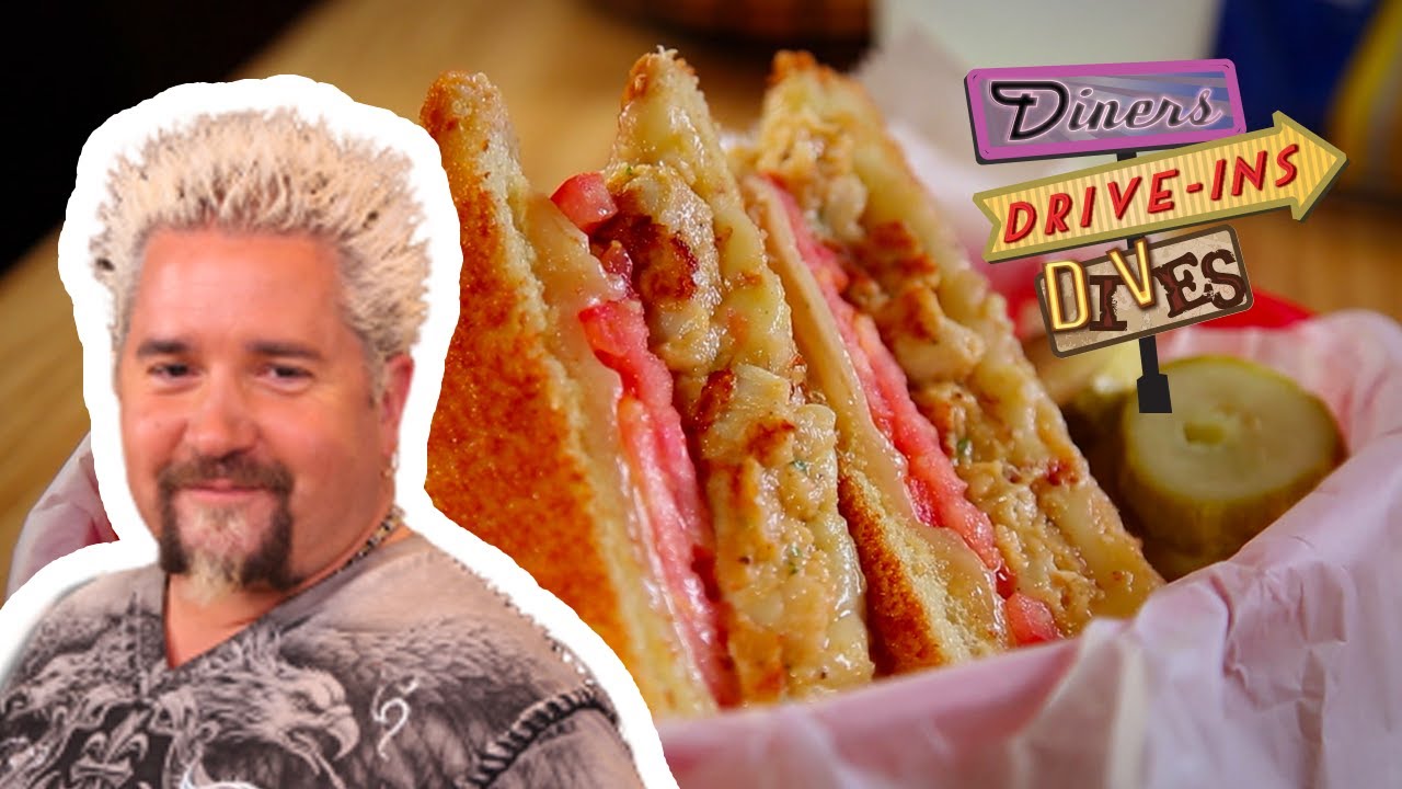 Guy Fieri Tries CRAB CAKE Grilled Cheese | Diners, Drive-ins and Dives with Guy Fieri | Food Network