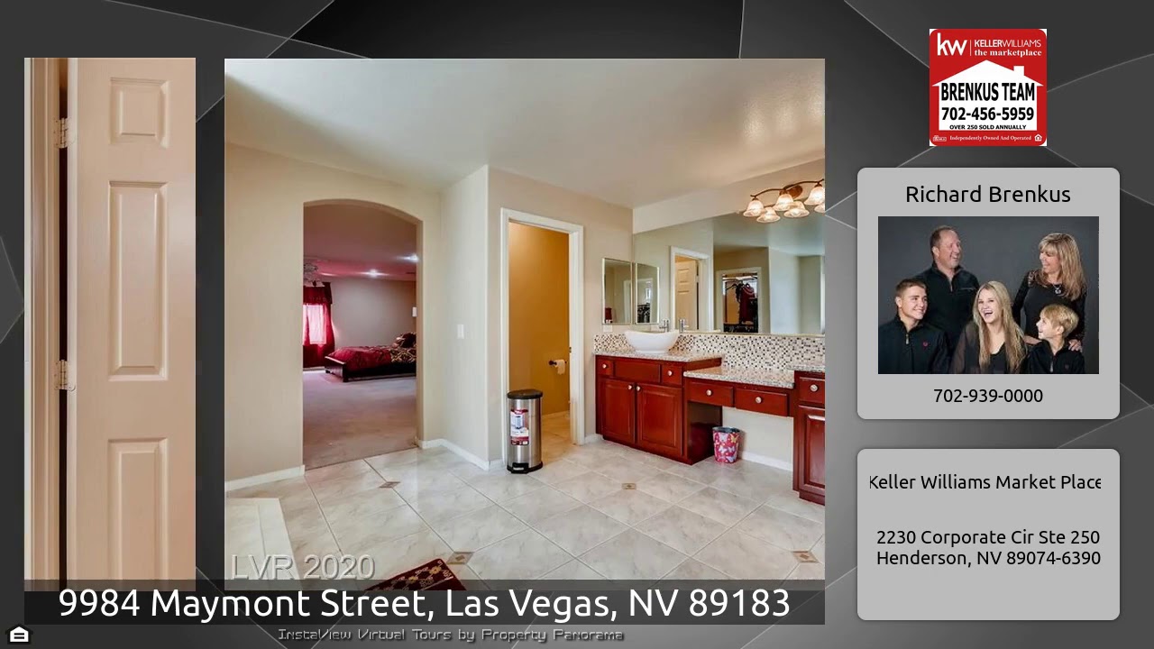 The Virtual Tour for the property at 9984 Maymont Street, Las Vegas, NV 89183 listed for $750,000: Other homes for sale by Richard Brenkus of Keller Williams Market Place: *Upgraded 2 Stry W Crtyrd In Gated Cmmnty*Unique Entry W Bttrfly Strcss*Spacious 4 Cr Grg*Italian Mrbl Flrng*French Chateau Chandeliers*Designer Gourmet Ktchn W Massive Grnt Islnd & Cntrl Ck Top W Islnd Rnge Hood,Cherry Cbnts,Ss Applncs&Back Splash*Loft & Den*2 Mstr Bdrms, 1 Upstrs 1 Dwnstrs, 2 Offces*Mstr Bth W Jacuzzi,Rain Shwr,Bowl Sinks & Granite Cntr Tops*Ample Storage*Open Backyard*Koi Pond, Lrg Sparkling Pool W Wtrfll …