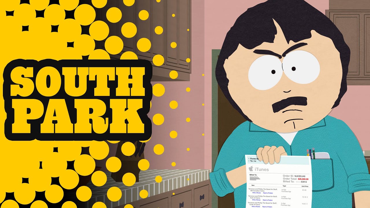 Randy is in the kitchen bitching out stan. Randy holds an itunes email print out in his hands and Stan just stands there looking at the floor.