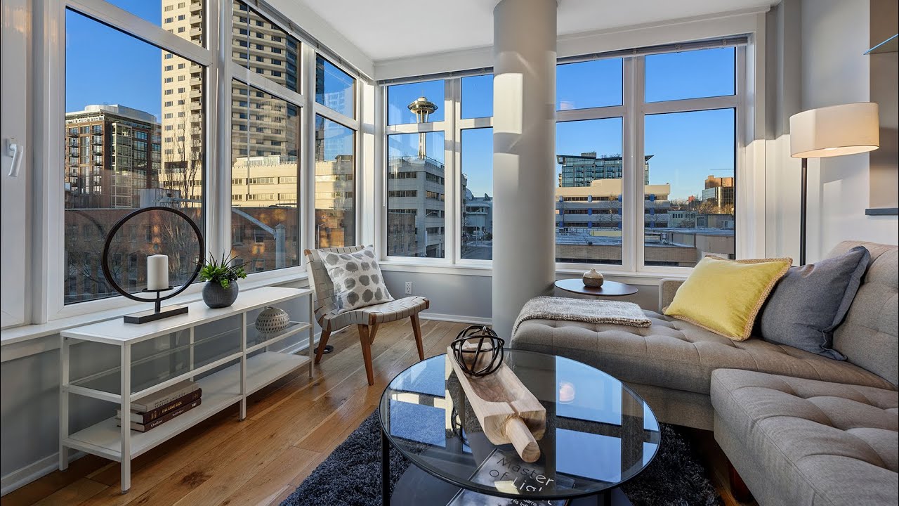 This modern 2 bedroom / 1 bathroom home is located on the northeast corner of the 4th floor with urban, peekaboo sound, and Space Needle views.