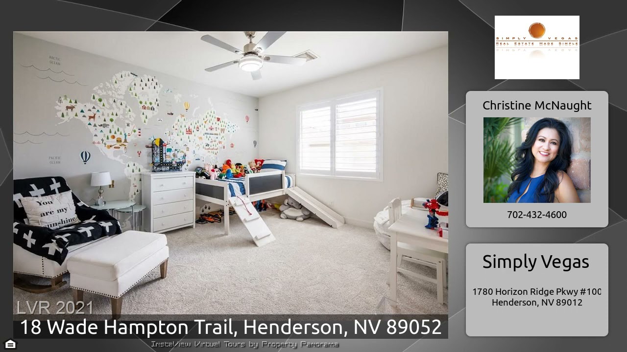 The Virtual Tour for the property at 18 Wade Hampton Trail, Henderson, NV 89052 listed for $1,700,000: Other homes for sale by Christine McNaught of Simply Vegas: Elegant customized desert contemporary home offers unparalleled craftsmanship and exceptional amenities! This French inspired design is truly remarkable inside and out. Features include white cabinets, quartz counter tops, crown molding, custom windows provide plenty of natural lighting, expansive patio decking, gourmet kitchen with island (great for entertaining), gorgeous master suite, loft, storage, plus STUNNING views of the 13th …