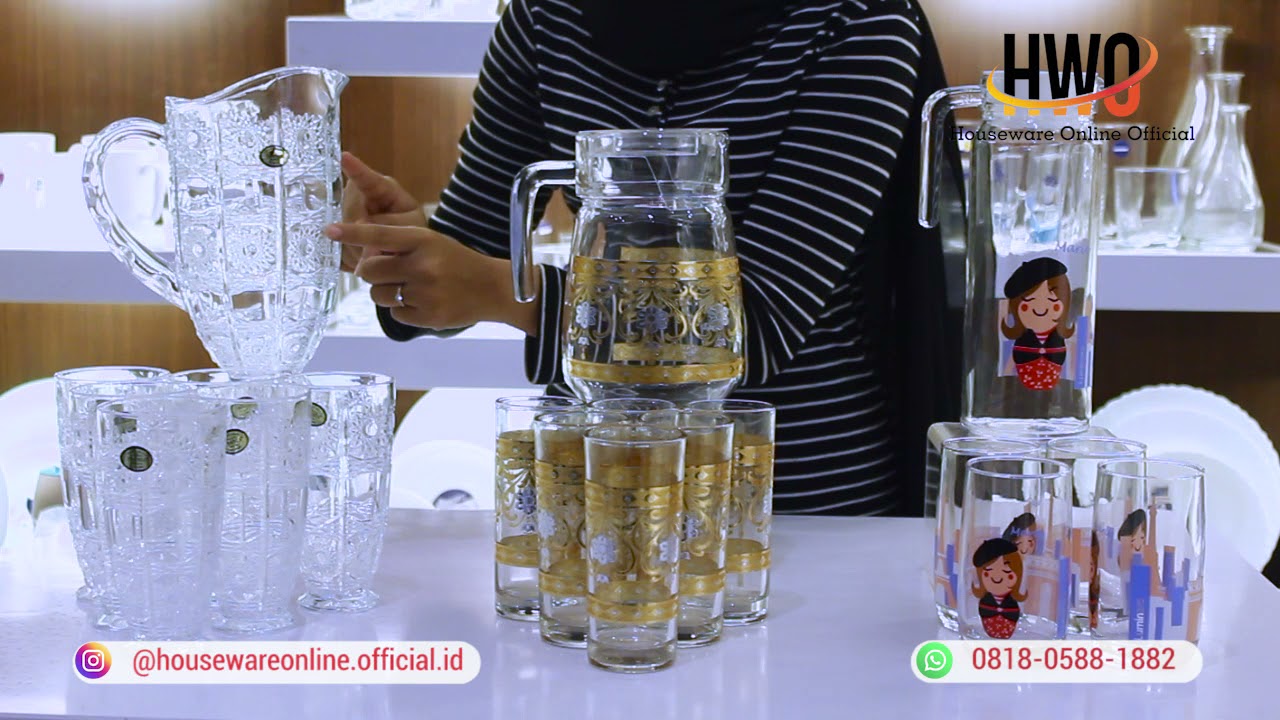 Desain dalam 1 set : 1 pcs jug + 6 pcs gelas kristal.