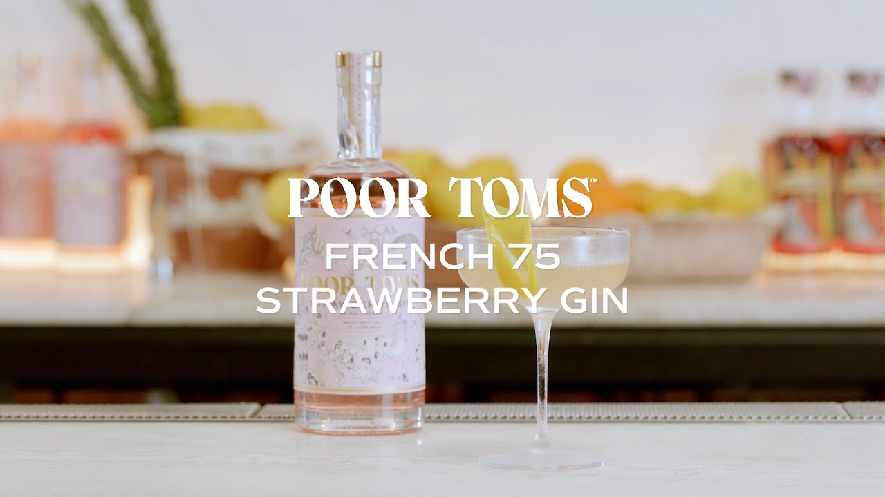 Add gin, lemon juice and sugar syrup to a shaker. Shake hard with ice. Strain into a chilled champagne flute. Top with sparkling wine -30ml Poor Toms Strawberry Gin -15ml lemon juice -15ml sugar syrup -sparkling wine FranceFrenchfrench winePoorTomsVideoVlogWineYouTube