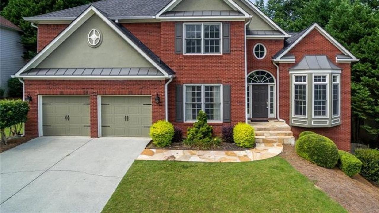 Gorgeous Brick front Family Home in super convenient location. Welcoming 2 story Foyer with Den/Office to the left with French Doors and bay window. Formal Dining Room to the right with wainscoting and crown molding. Light & Bright Family Room with marble fireplace, wood flooring and soaring ceiling. Large Kitchen features Breakfast Area, Breakfast Bar, lots of cabinets and counter space.