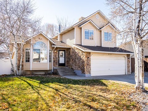 Charming West Jordan home on sizable fully landscaped yard with extended driveway boasts NEW roof, carpet, paint and faux wood flooring! Enter this newly remodeled home showcasing a bright formal Living Room with bay window and gorgeous faux wood flooring that leads into the Kitchen, Dining Room and Great Room. Open Kitchen boasts crisp white cabinets, vaulted ceilings, tile backsplash, stainless steel appliances and glass top stove. Great Room boasts fireplace with brick surround, custom built bookcases and French doors leading to the fully fenced backyard complete with extended patio, mature trees and great view of the mountains! Spacious Master Bedroom highlights walk in closet and en suite Master Bathroom. Home is located near Teton Estates park, Bingham Creek Trail that leads to Glenmoor Golf Course, Costco, District shopping, dining and entertainment, Bangerter Highway and more! This home is a MUST SEE!