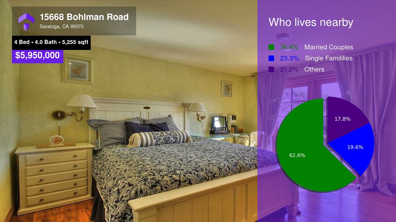Sits on a picturesque 6.6 acres in Saratoga Hills with spellbinding Silicon Valley & San Francisco Bay views. Soak in the sights & relax in your oversized spa, work out on the sports court or enjoy a round on the putting green. Cabernet Vineyards & 2 mi. to Downtown Saratoga, 15 minutes to Levi stadium & more! Grand foyer and living room boast panoramic views through large picture windows, vaulted ceilings & Limestone fireplace. Gourmet kitchen is fantastic! Several preparation areas, gourmet appliances, pantry, granite slab countertops & large center island w/sink & breakfast bar.A spacious family room w/vaulted ceilings, surround sound, and three sets of French doors leading to a Juliet Balcony. Formal dining room with wood beamed ceilings & French Doors leading to a private terrace. Beautiful flagstone terraces overlook the oak-studded hills and city views. Perfect for entertaining or quiet enjoyment, outdoor amenities are perfect for summer days or relaxing sunsets.