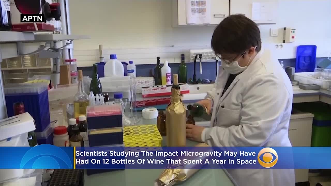 Scientists who blasted a dozen bottles of expensive French wine into outer space more than a year ago are now sniffing, sampling and studying the alcoholic beverage to determine the impact of microgravity. Katie Johnston reports.
