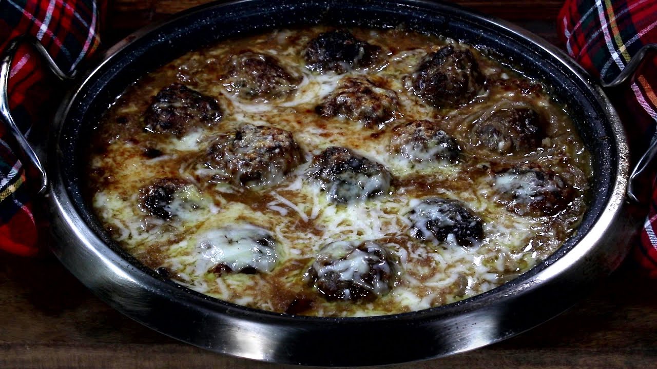 Add ground beef, breadcrumbs, parmesan cheese,egg, salt, and pepper to a small bowl and mix together. Roll beef mixture into 12-16 2-inch size meatballs. Cover the meatballs and place them in the refrigerator for a half an hour to set up. Heat a large oven-safe skillet over medium heat with oil. Place the meatballs in the skillet and cook for about 8-10 minutes, turning a few times until the meatballs are mostly cooked through. The meatballs will cook more in the gravy. Once done, transfer the meatballs to a plate and cover to keep warm. Melt 4 tablespoons butter in the skillet over medium heat. Add sliced onions and sugar and cook for 10 minutes, stirring occasionally. Add chicken broth or white wine to deglaze the skillet. Cook for another 10-15 minutes until onions are caramelized. Turn to medium-high heat and add garlic and cook for a few minutes. Add flour and mix into onions; let cook for another minute. Slowly add beef broth to the skillet, mixing and scraping browned bits on the bottom of the skillet. Bring to a boil to thicken the gravy, about 2 minutes. Reduce heat to medium-low. Stir in the red wine, Worcestershire, salt, and pepper. Return meatballs to the skillet, cover and cook for about 10 minutes, or until meatballs are cooked through. Remove from heat. Sprinkle with gruyere or swiss, provolone, and parmesan cheese. Set the oven to low broil and place the skillet in the oven on the top rack. Broil for 2-3 minutes or until the cheese is melted and slightly browned. Garnish with fresh thyme and serve warm over rice, pasta or mashed potatoes.