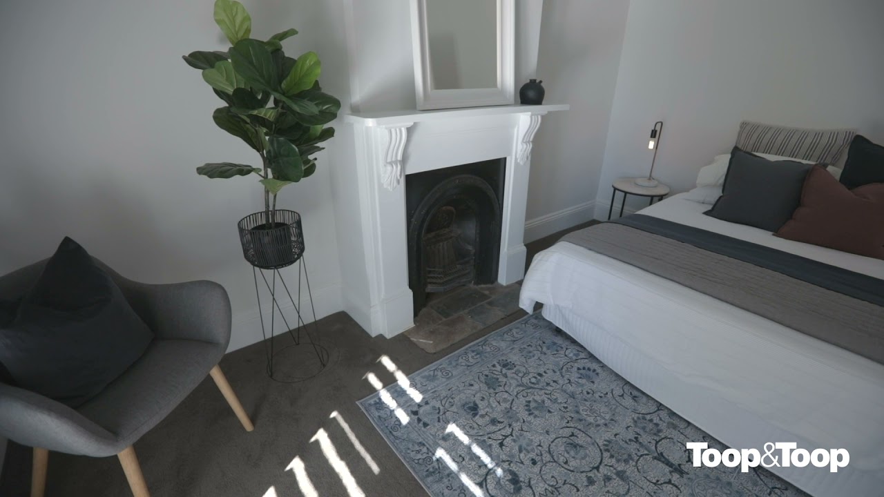 The home offers accommodation for the growing family. The two large bedrooms at the front each with a fireplace and special touches like ceiling fans and stylish plantation shutters and the third bedroom or office offers wall to wall builtin storage unit.