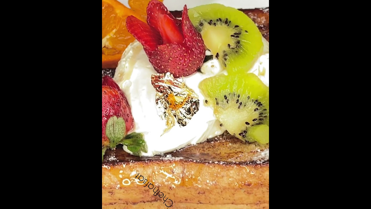 IngredientsINGREDIENTS 1 cup of milk 2 eggs 1 cup of sugar 3 sticks of butter/oil 1 tablespoon of cinnamon powder 1/2 teaspoons vanilla extract Whipped cream Strawberry Edible gold leaf Kiwi Orange for garnishing Maple syrup cinnamoneasyFranceFrenchFrench recipesPeasyRecipeToastVideoVlogYouTube
