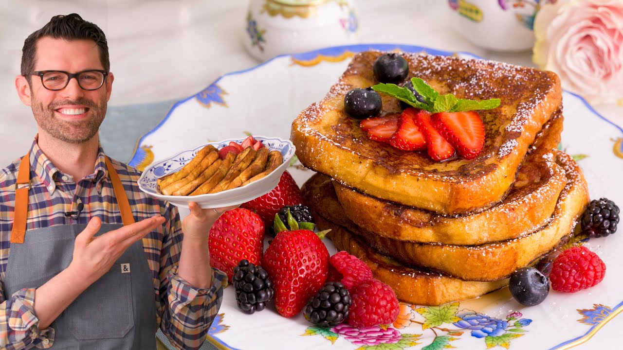French toast is the easiest fancy breakfast you can make! Slices of bread dunked in a rich egg custard with vanilla and cinnamon, drenched in maple syrup, and topped with fresh berries. This recipe makes the ultimate weekend brunch treat that you can whip up in just a few minutes!