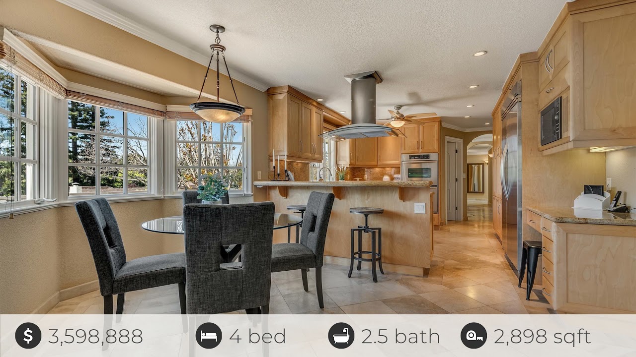 See the Property Website! :: Jim and Jimmy Nappo – Compass – 650.861.7661 :: Resort-style living awaits on a cul-de-sac street in the desirable Highlands of Los Altos. Elevated above the street and bordered by prolific roses and fruit trees, this Santa Barbara ranch-style home presents indoor/outdoor California living with a large pool, BBQ, huge covered patio, and fire pit area on approximately one-quarter acre. Beautifully updated interiors with crown moldings, limestone and wood floors, a fireplace in the living room, a formal dining room, and a granite-finished eat-in kitchen. Adding wonderful everyday living space is the family room, which doubles as a poolside entertainment venue as well as a media room with in-wall surround sound speakers and sub-woofers, plus HD projection system with retractable cinema screen. There are 4 bedrooms and 2.5 baths, highlighted by the primary suite, which opens to the rear grounds and pool. Completing the home are an oversized two-car garage and laundry room, solar power for electricity, solar heating for the pool and expansive covered terrace. Desirable schools nearby include Montclaire ES, Cupertino MS, Homestead HS, St. Simon, St. Francis and Pinewood. Also enjoy the neighborhood entrance to Rancho San Antonio Preserve and hiking trails. Welcome home! Summary of the Home 4 bedrooms, family room, and 2.5 baths Approximately 2,898 square feet of living space Approximately one-quarter acre (11,063 square feet) in the Highlands with a large pool with a diving board Solar power for electricity Solar pool heating Completely remodeled home with custom touches throughout Elevated front entrance lined with iron railings and prolific roses Iron and glass front door open to a traditional foyer with limestone floor and inlaid mosaic medallion Spacious carpeted living room with double French glass doors to the pool, fireplace, and Tuscan columns framing an arched entrance to the formal dining room Remodeled kitchen has custom maple cabinetry topped in granite slab with full-height backsplashes; customized pantry storage, peninsula counter seating, built-in desk, and separate casual dining area Stainless steel Appliances include a KitchenAid gas 5 burner cooktop, 2 KitchenAid ovens, Miele dishwasher, Broan compactor, Instant Hot/Cold Reverse Osmosis Filtration System, Panasonic microwave, and large built-in KitchenAid refrigerator Family/media room, just off the kitchen, features wood flooring, two lighted fans, cove lighting, a bar area with refrigerator, plus French doors to the front and sliding glass door to rear terraces; media needs are met with in-wall wiring plus a retractable cinema screen, projection system, and surround sound Primary bedroom suite has wood floors, a tray ceiling with Casablanca lighted fan and cove lighting, sliding glass French doors to the pool, and customized walk-in closet; the updated en suite bath has a dual-sink granite vanity, skylight with cove lighting, large shower with dual shower heads/controls, and private commode room Three additional bedrooms, each with lighted ceiling fans and carpet and one with sliding glass doors to the rear yard, are served by a hallway bath with dual-sink granite vanity and glass-enclosed tub, limestone walls and overhead shower Great rear yard with solar-heated pool with diving board, covered patio, fire pit area, grass, palm trees and raised vegetable beds Other features include: half-bath; laundry room with sink and washer and gas dryer connections and additional refrigerator; attached and oversized 2-car garages with built-ins, EV charging outlet and space for workshop/workout area; Nest thermostat; freshly painted outside; whole-home fan; water purification and softener system; distributed sound speakers inside and out, heated stone floors, solid core doors throughout. Easy access to the Rancho San Antonio Preserve and local commute arteries. Acclaimed schools: Montclaire Elementary; Cupertino Middle; Homestead High (buyer to confirm)