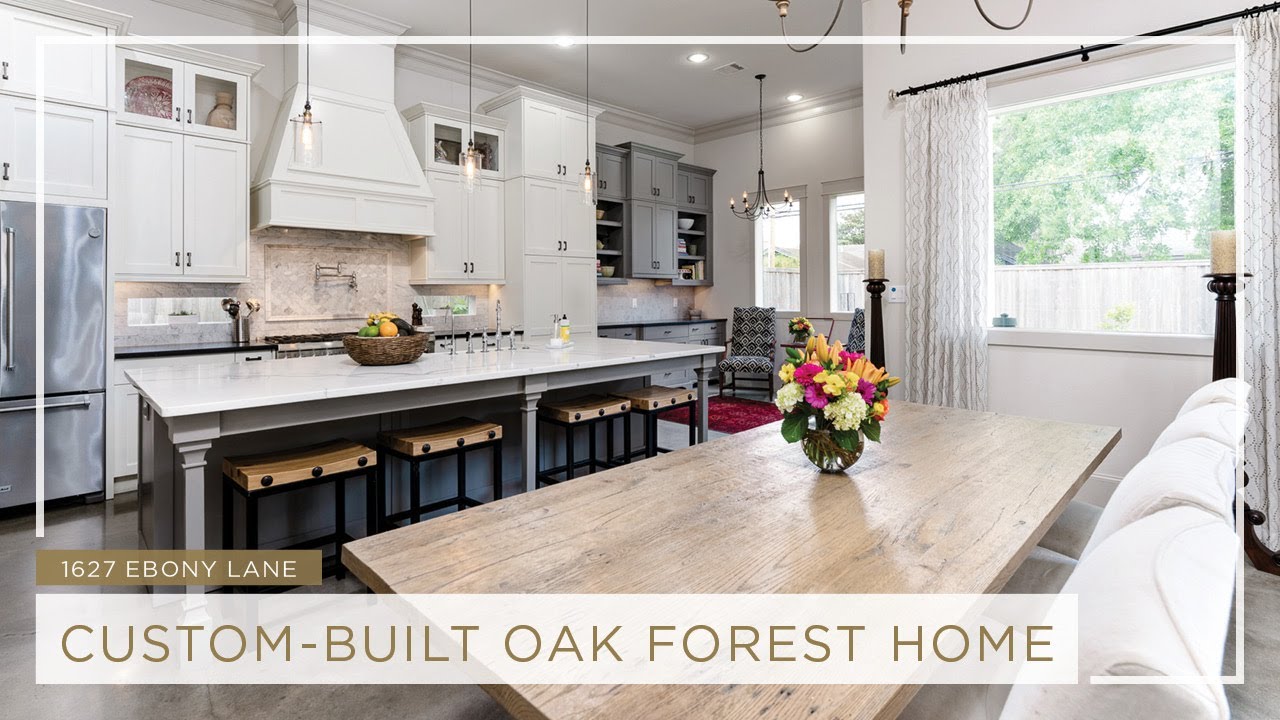 Custom-built home in Oak Forest with tailor-made forged iron front door, 12’ ceilings, polished concrete and wood flooring, exceptional wine room, Carrara marble in the bathrooms, bespoke chandeliers, laundry room with custom shelving and bonus storage room, flex room with built-in desk, and accordion door that connects the living room and patio, creating a seamless blend of indoor/outdoor living. Gourmet kitchen featuring white marble island, farmhouse sink, soft-close cabinetry, custom pantry with sliding shelves, breakfast nook, wall-mount pot filler, Thermador 6-burner gas range with griddle, and microwave drawer. Luxurious primary suite with a privacy balcony, 2 walk-in closets, separate vanities, freestanding tub, and oversized shower with 2 showerheads. Automatic remote-control blinds, prewiring for elevator, tankless water heater, lush backyard with firepit and butterfly garden, garage with epoxy flooring and overhead storage, extra wide driveway, and French drains.