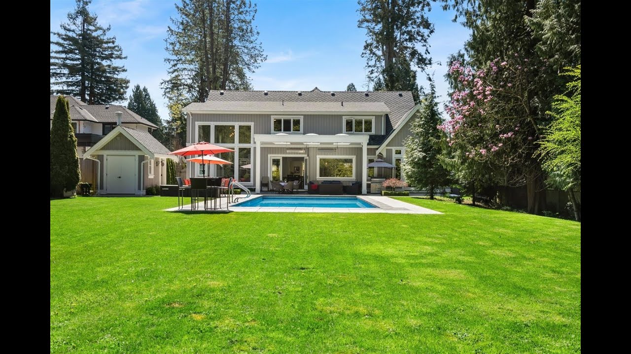 A beautifully crafted gated estate on one of Ocean Park’s best streets. This custom Su Casa designed family home offers luxurious finishes and resort-like features on a picturesque 20,814sqft private and gated property. Walking into the foyer, you are greeted by soaring ceilings, floor-to-ceiling windows and an open-concept layout ideal for indoor & outdoor entertaining. The Great Room features a timeless stone fireplace and the adjacent Gourmet Kitchen complete with professional grade appliances, granite counters and a walk-in pantry. French doors lead to an expansive covered and heated patio with a sensational sun-drenched resort style POOL. Master Bedroom Suite tucked away on the main floor and 4 additional ensuited bedrooms above, including a bonus games room. A timeless home!