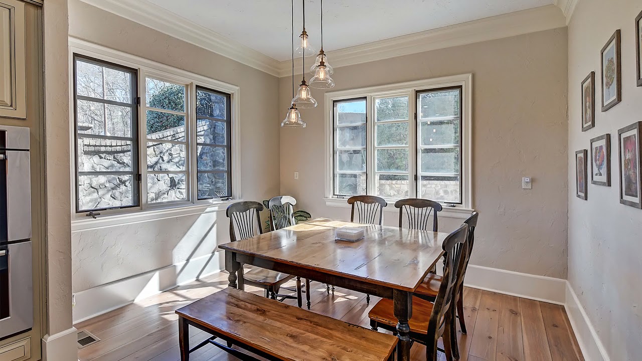 See the Property Website! :: Luxury abounds in this South Charlotte, 2-story Tudor nestled in the European inspired neighborhood of Chambery. The 1st level features tall ceilings & wide-plank, site finished, heart of pine floors offering a touch of modern that melds seamlessly w/the custom features thru-out. First floor highlights include: private home office w/8 ft. French doors, large dining room w/seating for 8+, gourmet kitchen w/Sub-Zero fridge, upgraded Bosch gas cooktop & double ovens PLUS wood burning fireplace. The 2-story great room allows plenty of wall space for your artwork, wood beams on the ceiling, a gas fireplace & overlooks the private rear yard & covered porch. There s a main level owner’s suite w/a THIRD fireplace, coffered ceiling & spa-like bath w/deep soaking tub, separate shower, & a massive custom walk-in closet. Don t miss the wine cellar! Upstairs are several Juliet balconies, a recreation room that’s over 700 sq ft, 3 bedrooms & 2 luxury bathrms! Tons of attic storage!