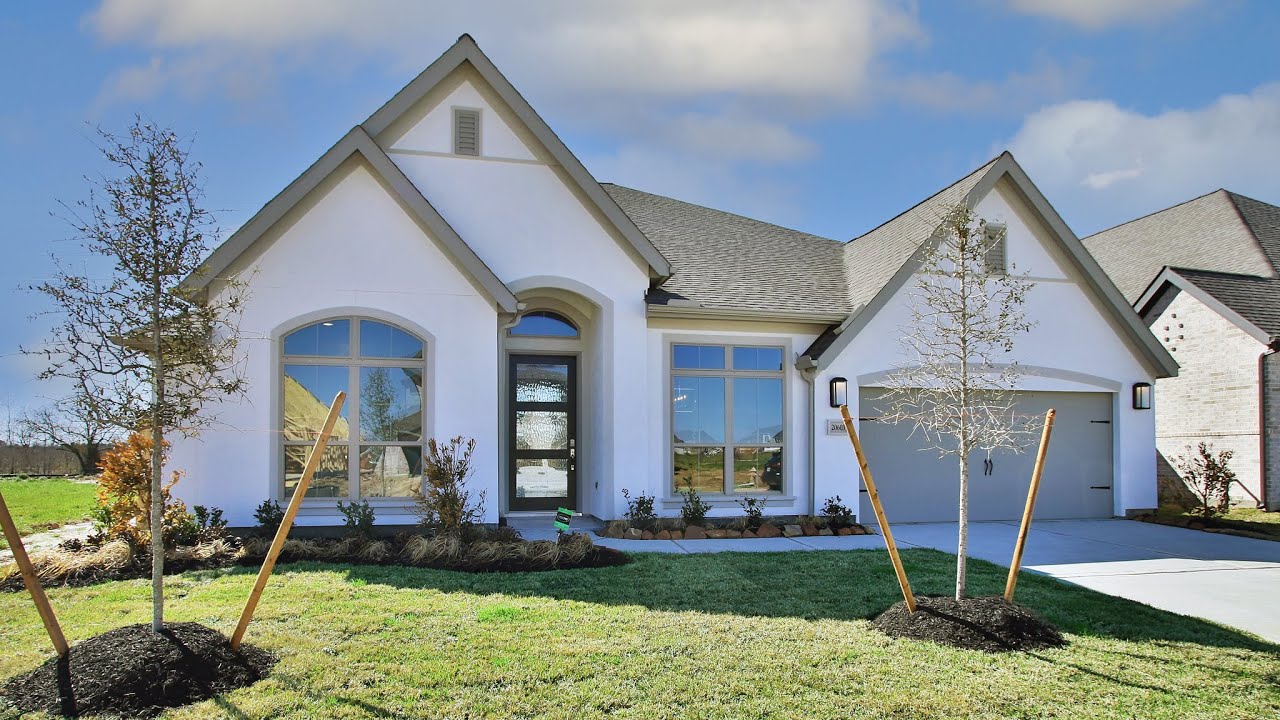 Amira is a brand-new 370-acre master-planned community of new homes for sale and is located just north of the Grand Parkway, Amira is elegant by nature with first-class amenities and a stunning one-of-a-kind clubhouse. This 3257 sq. ft. plan offers four bedrooms, three full bathrooms and one half bathroom. Home office with French doors and formal dining room frame elongated entry. Open family room features a wood mantel fireplace and a wall of windows. Island kitchen features Butler’s pantry and large walk-in pantry. Game room with French doors off morning area. Primary suite includes primary bath with dual vanity, corner garden tub, separate glass-enclosed shower and two walk-in closets. Guest suite offers private bath. High ceilings, large windows and abundant closet space add to this generous one-story home. Covered backyard patio. Mud room off three-car garage. #perryhomes