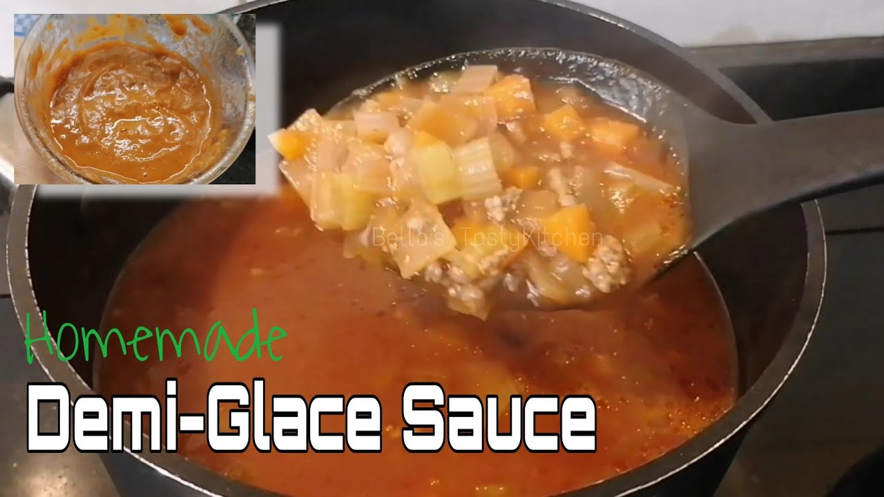 Demi-Glace is a rich brown sauce in French cuisine used by itself or as a base for other sauces. The term comes from the French word glace, which, when use in reference to a sauce, means “icing” or “glaze”. It is a traditionally made by combining one part Espagnole sauce and one part brown stock.
