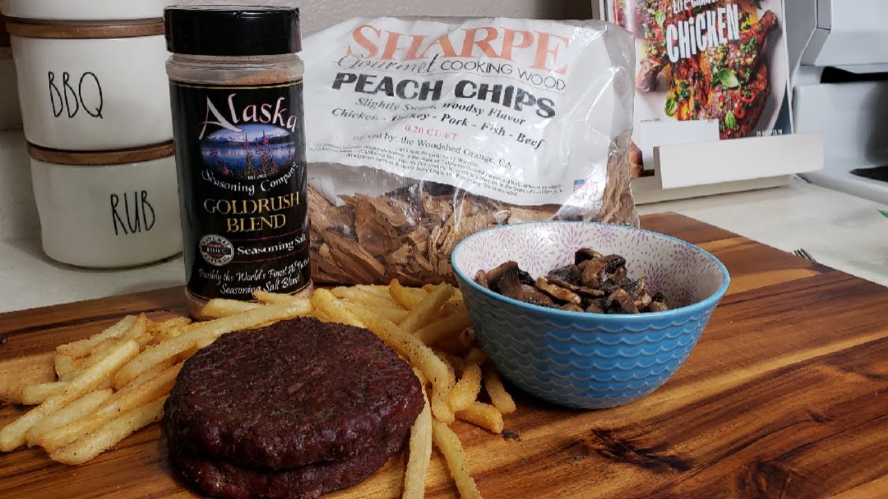 This is my second video testing the Alaska Goldrush Blend by the Alaska Seasoning Company to see if it really is an all purpose seasoning. This time I tried it on peach wood smoked hamburgers, French Fries, and sauté mushrooms.