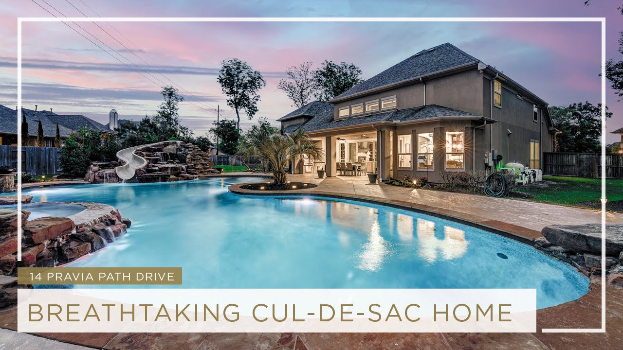 Breathtaking 6-bed, 4.5-bath property by J. Patrick Homes on graciously proportioned cul-de-sac lot across from nature area in Sienna Plantation. 107-yd wide backyard tropical retreat featuring a covered patio, outdoor kitchen, pool with rock waterfall and slide, spa, firepit, and ample green space. Other features include grand 2-story foyer, wrought iron spindles, built-ins and granite countertops throughout, study with French doors and coffered ceiling, formal dining room, spacious living area with wood beam ceiling, floor-to-ceiling stone fireplace, and large glass doors leading out to the backyard, game room, media room, and 2-car side swing-in garage plus a 1-car garage. The gourmet kitchen boasts a stainless steel farmhouse sink, walk-in pantry, butler’s pantry with wine fridge, and top-of-the-line appliances, including Thermador 6-burner gas cooktop with griddle and a double oven. The primary suite boasts a walk-in closet, separate vanities, jetted tub, and frameless shower.