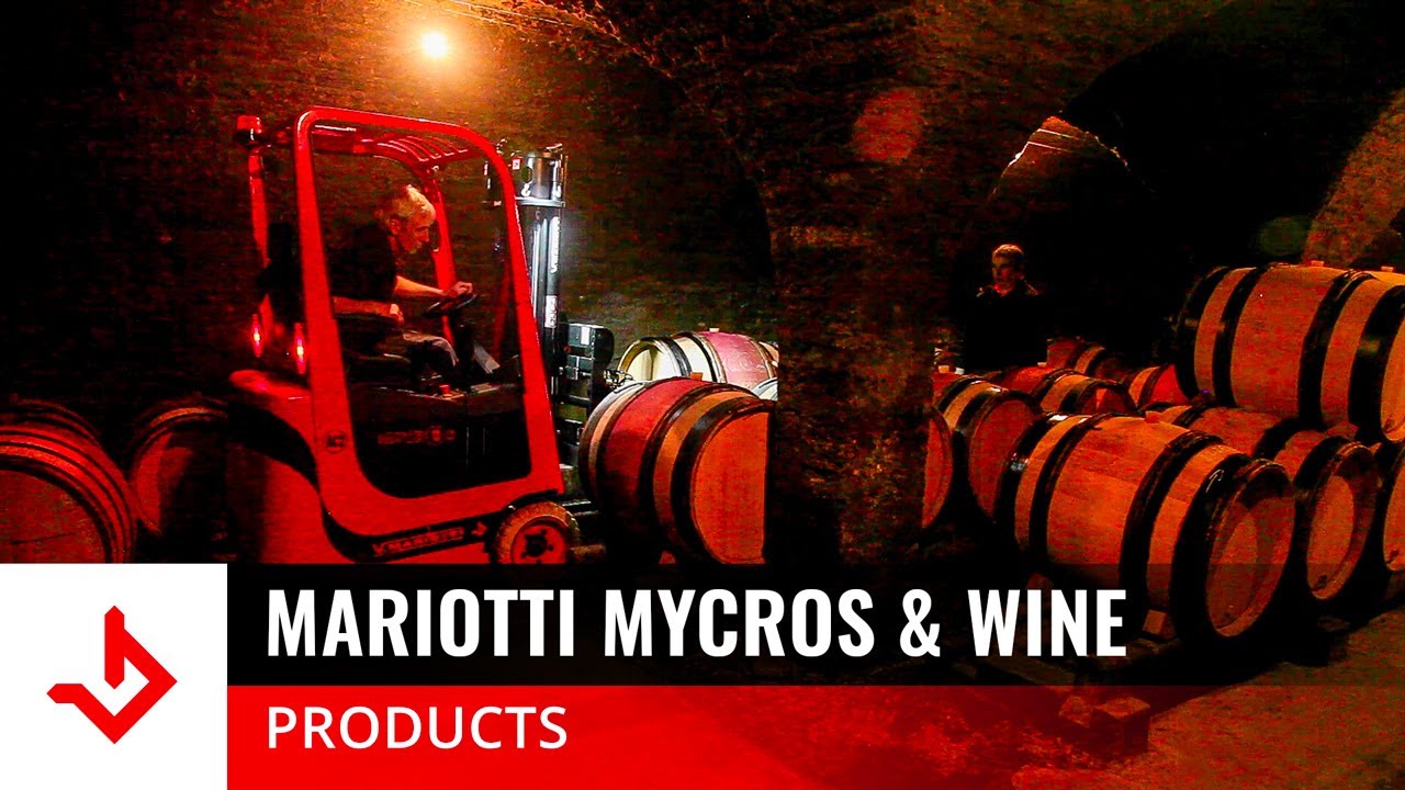 The historic French brand Albert Bichot, among the major Bourgogne wine producers, chose a Mariotti Compact Forklift (model Mycros) equipped with a special wine barrel attachment (designed by Mariotti) to move precious barrels in its ancient cellars.
