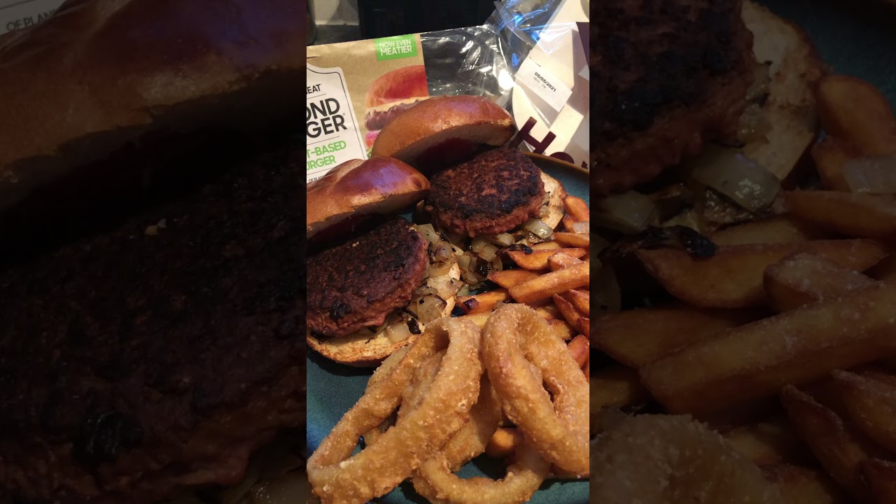 Sunday night dinner with beyond meat burgers and onion rings with chips CuisineDiningdinnerFranceFrenchfrench cuisineFrench diningNightshortStoriesSundayVideoVlogYouTube