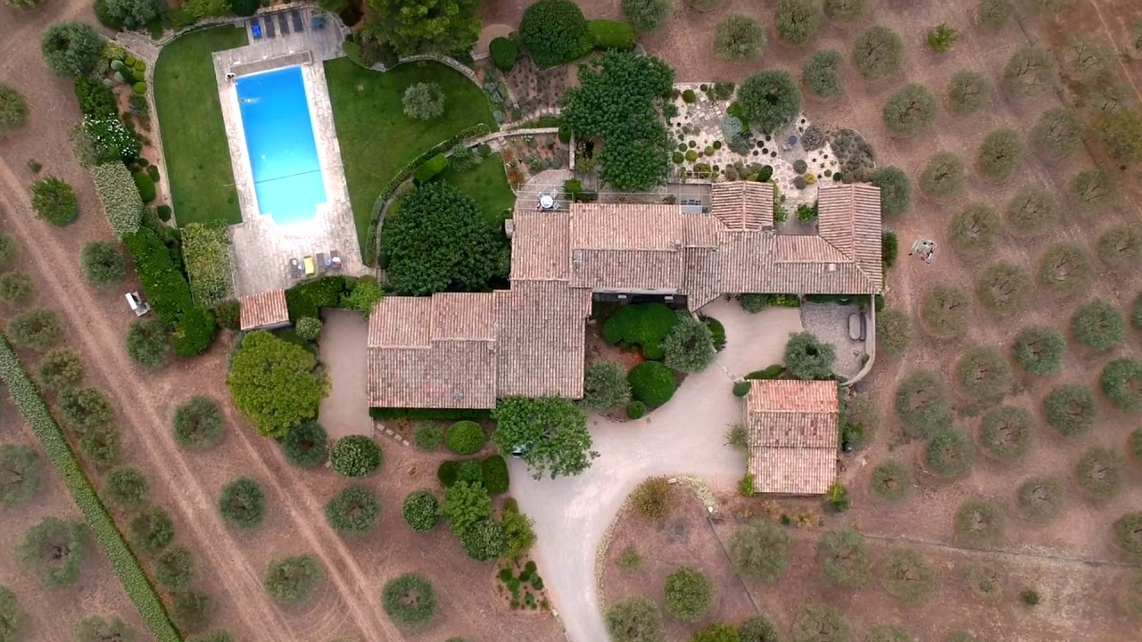 Mas Des Abricots and the Alpilles mountains shot from above, a traditional Provencal Mas (farmhouse) now available for holiday rentals (2020). For photos and bookings visit www.masdesabricots.com.