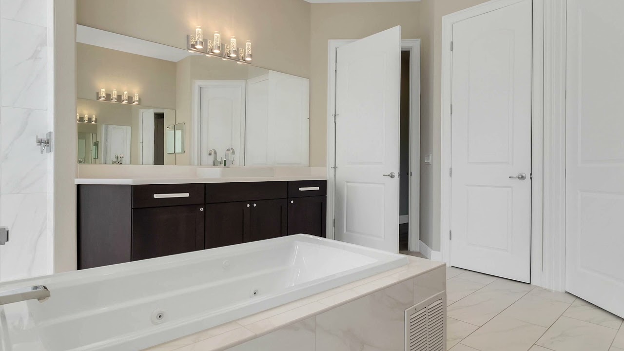 The gourmet kitchen and casual dining area is highlighted by custom cabinetry, Kitchenaid appliances, walk-in pantry and oversized island featuring quartz countertops. Just beyond the powder room, the first floor master suite features a huge walk-in closet with custom built-ins, a modern everyday spa, and outstanding views. The welcome home center is ideally situated from the 3 car garage.