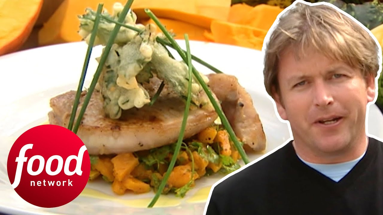 James is in Champagne, France, celebrating the best of French cuisine. He shows you how to make exquisite pan-fried pork with anise squash and battered celeriac tops.