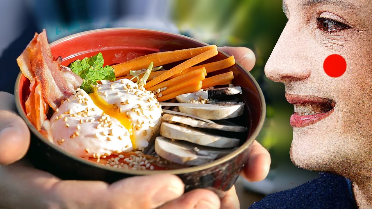 How to make Poached Eggs “Meurette”, aka Eggs in red wine sauce with a Japanese Twist. Soba, Bacon, Spring onions, Chilis : French food can be international !