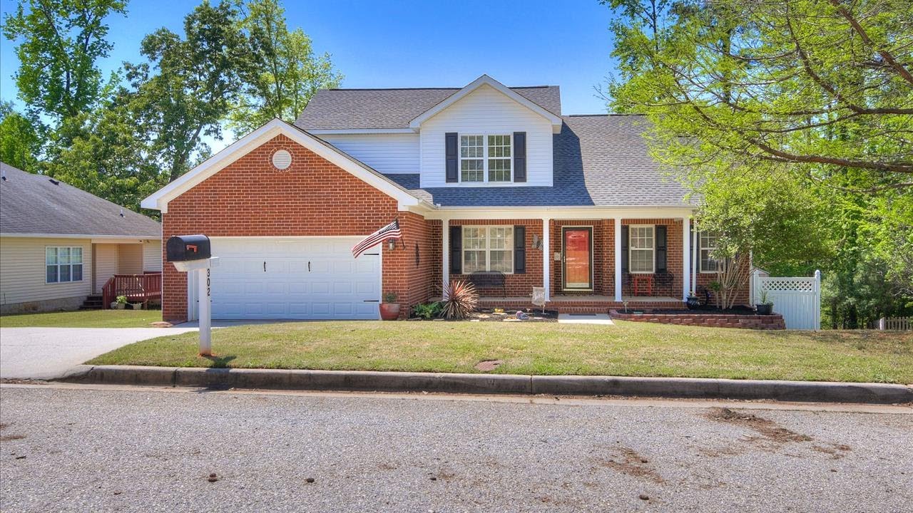 See the Property Website! :: Jessica Moon – The Frontgate Group at Summer House Realty – 706-799-9448 :: 4 bed, 2.5 bath, brick house with everything you’ve been searching for in a home! Spend your mornings sipping coffee on your rocking chair front porch and your evenings relaxing or entertaining on your two-level deck. Inside you’ll find a fully, freshly painted interior, as a blank canvas to create your dream home. Foyer opens to your formal dining room with wainscot paneling and updated light fixture. Great room features vaulted ceiling with gas fireplace and open stairway to the 2nd story. The kitchen includes stone, tile backsplash, updated stainless steel appliances and opens into an eat-in dining space. The owner’s suite is on the main level, and includes french doors into your ensuite with large closet, garden tub and tiled shower. The three remaining bedrooms upstairs all have new carpet, and one highlights pallet-wood accent wall. Attic storage off the guest bedroom.