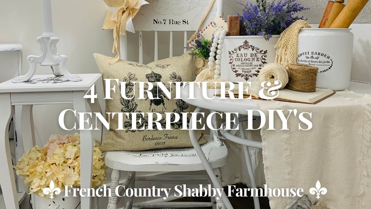 4 FURNITURE & CENTERPIECE DIY’S! FRENCH COUNTRY SHABBY FARMHOUSE STYLE. 4 Trash to treasure makeovers! Repurposed tables and making rustic shabby chic, French country, farmhouse centerpieces from an old pot and glass jar. Lots of styling ideas & easy home decor projects for your home! If you love French Country Shabby chic farmhouse DIY projects then you will enjoy this video! You won’t believe all the beautiful things you can create using some chalk and spray paints along with some simple, inexpensive, reusable stencils I purchased from Amazon. My Amazon storefront is linked below. It is loaded and stocked with so many beautiful and affordable decor items for your home and crafting supplies! These DIY projects include some yard sale finds and I showcase how I redesign all the pieces using some chalk paint, stencils and spray paint. In this video I style all the items showing how well they compliment any space in your home. All of these projects were very easy to create and I had so much fun working on each one. I always try to give tips and inspiration on how I decorate to save money and show many things that are easy DIY projects. I try to go with more simple, elegant and budget friendly shabby chic farmhouse decor pieces and elements! I try to show how you can create nice decor for your home without breaking the bank. I give inspiration and ideas on how to be creative using various items and show how they can be styled throughout your home! Hope you enjoy the video and if you haven’t already, please SUBSCRIBE to our channel, LIKE and COMMENT! Thanks for watching!