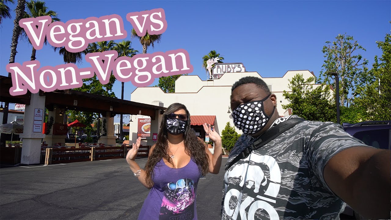 Princess has been going to Ruby’s since before she was vegan and has never had an opportunity to show Bear. This time we head to an open Ruby’s Diner for vegan or plant based and non-vegan foods available, with dessert!