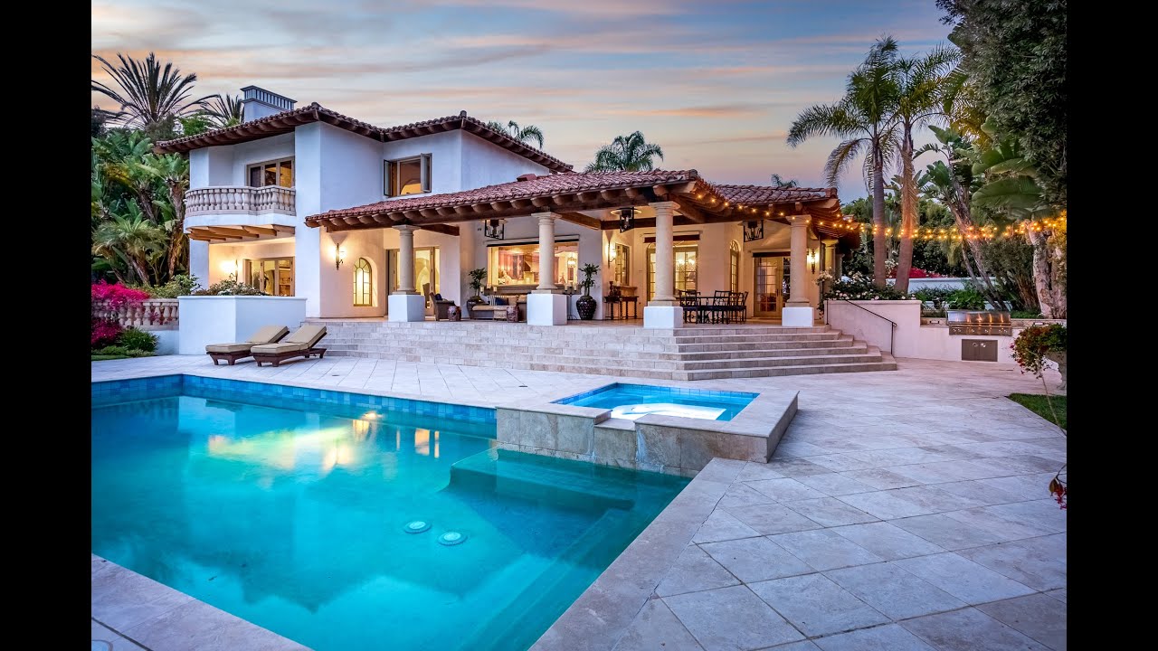 Live the luxury lifestyle nestled within the guard gated community of Fairbanks Ranch, one of Rancho Santa Fe’s most beautiful, peaceful, private and picturesque communities. Ideally situated, this custom residence has been recently updated, using timeless design elements and materials. This gracious home exudes casual elegance and provides the ultimate venue for indoor/outdoor living and entertaining. The approximately 6,228 square foot residence with panoramic South -West views, encompasses four well-appointed bedrooms suites, stylish powder room, custom designed climate controlled walk-in wine cellar, office/library enveloped in wood, formal living room with wood coffered ceiling and stone fireplace and formal dining room. The family room with fireplace, fish tank and service bar opens to the kitchen. Designed for a chef with dining area and seating bar and is finished with the finest quality top-of-the line appliances, slabs of stone and custom cabinetry. The sublime master suite, located privately on the second level has a resting room with a remote controlled drop ceiling TV, large picture window and includes a large sitting room with fireplace and French doors leading to the view oriented veranda….perfect for morning coffee, afternoon sun or a night cap, Zen-like spa bath and oversized dressing room with custom wood cabinetry. Most public rooms have French doors leading to private courtyards and the lush backyard with pool, spa, summer kitchen, koi pond, expansive covered loggia and stairs leading to the lower yard with a regulation size tennis court with viewing pavilion. The property sits on 1.29 acres. Garaging for 4 cars. Custom wrought iron detailing and light fixtures. Hand-honed Portuguese travertine and hard wood flooring. Large gated and walled front motor court with bubbling fountain. Located on a quiet cul de sac location. Whole house solar. A rare jewel…..with style, quality and impeccable details.
