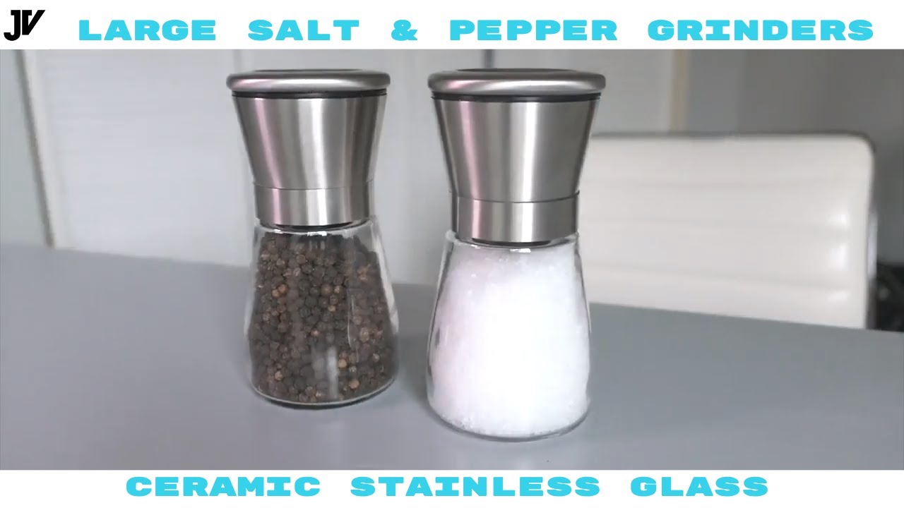 Salt and Pepper Grinder Set – Choosy Chef Brand – Glass and Stainless Steel, Refillable, Ceramic Mechanism