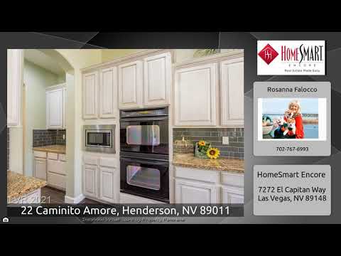 The Virtual Tour for the property at 22 Caminito Amore, Henderson, NV 89011 listed for $695,000: Other homes for sale by Rosanna Falocco of HomeSmart Encore: Lake Las Vegas Resort, South Shore Beauty! Single story w/casita, each bedroom has own bath plus a powder room, wet bar off family room with elegant fireplace, kitchen with eating nook, breakfast bar, walk in pantry and Butlers' pantry, opens to formal dining room, a remodeled delight! Huge Master suite with fireplace, walk in closet, high volume ceilings throughout, French doors and windows galore, gated courtyard, separate casita, huge …
