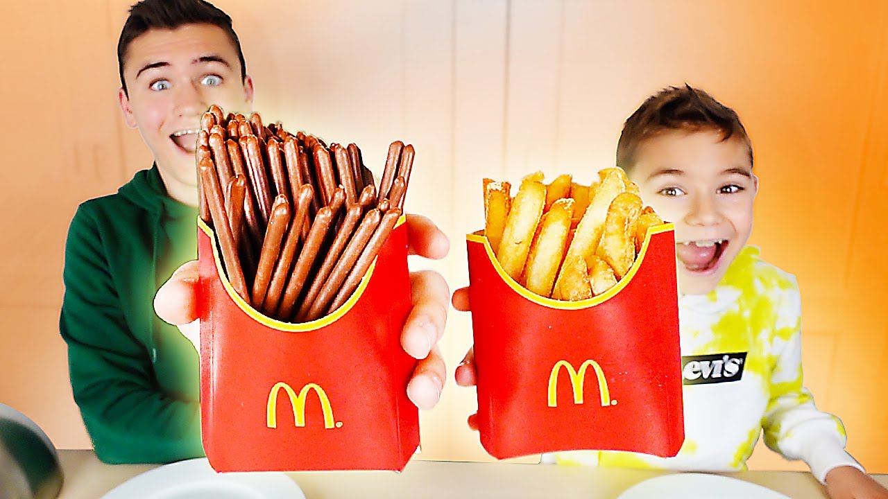 C’est un “challenge cloche” comme le Gummy Food Vs Real Challenge qu’ils adorrrrent, mais avec du chocolat à la place des bonbons 🙂