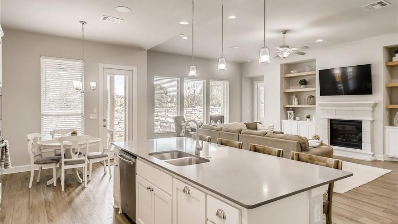 Come see this BEAUTIFUL home in desirable Parkside at Mayfield Ranch! Shows like a model with stunning white cabinets and pristine luxury plank flooring. Truly an entertainers dream with an open concept gourmet kitchen including stainless steel appliances, pendent lighting and a huge island! The large family room features white built in cabinets with custom shelving and a gas fireplace opening to a lovely dining room with ceiling beams. Gorgeous owners retreat with a spacious bathroom boasting a soaking tub and a walk in shower. Convenience abounds with his and her walk in closets providing entry into the laundry room! You’ll love working from home in the light and bright study with French doors. All four bedrooms are on the main level including 3 full baths and 1 half bath. Truly one story living with the bonus of a large upstairs living area with an additional half bath! A wonderful community with two pools, amenity center and a neighborhood school! Fantastic location with easy access to 183 or I-35. Welcome home!