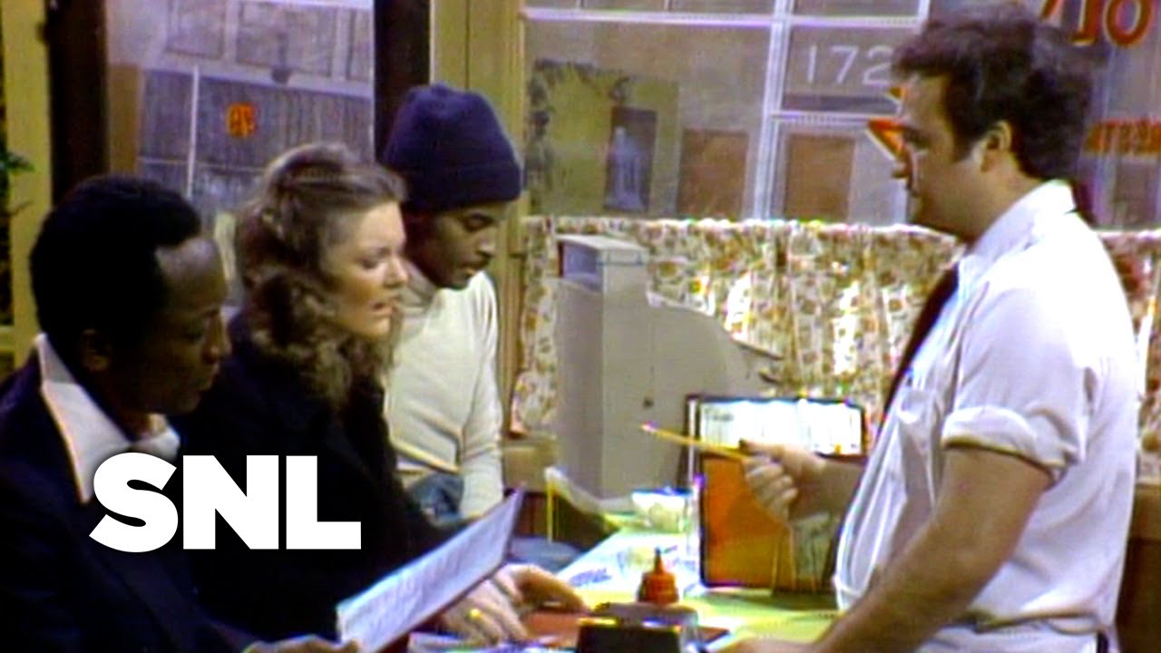 Frustrated patrons are annoyed that they can only get cheeseburgers, chips and Pepsi at The Olympia Restaurant. A featured patron (Robert Klein) really wants eggs and argues with the staff including Pete (John Belushi). [Season 3, 1978]