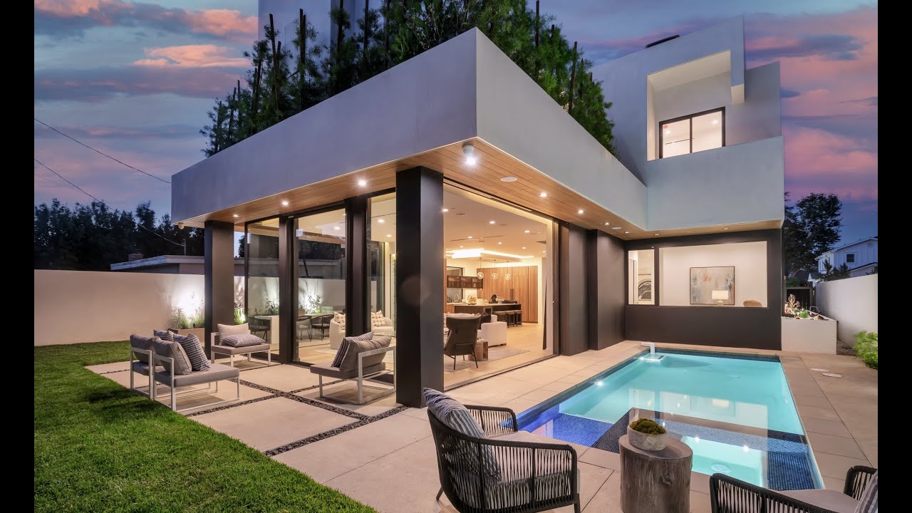 New construction in West Los Angeles. The minute you open the custom glass front door, you will be amazed with the amount of light pouring into this entire home, due to the high ceilings throughout, and 8 skylights. Your eye is drawn to the Living Room with 3 walls of sliding glass doors and motorized windows opening up to a lush backyard, with a waterfall over the pool. Intricate automated fire pit off of the living room , as well as built in barbeque area. The living room features a motorized TV lift coming up from the floor, as well as motorized window opening to the firepit. The large first bedroom is off the entry, faces a beautiful front yard,and can be used for a formal dining room, or family room. French white oak floors throughout the home, except for the tiled floors in all the baths. 2nd bedroom suite is also on the first floor, and can be used as a private in home office, which overlooks the pool and waterfall. The custom designed Docamoderna kitchen from Spain boasts Meile appliances, Ceasar Stone counter tops and is perfect for gourmet chefs. Solid white oaks stairs leads to the 2nd level, with tempered glass railings. 3 bedroom suites, and laundry room on this level. Master suite, with large walkin closet, beautiful bath , with extra large walkin shower, separate bath and double sinks, and access to a private rooftop deck/ with built in TV and entertaining area. The added bonus to this home is the attached ADU, which is perfect for a nanny, mother in law suite, gym or office.