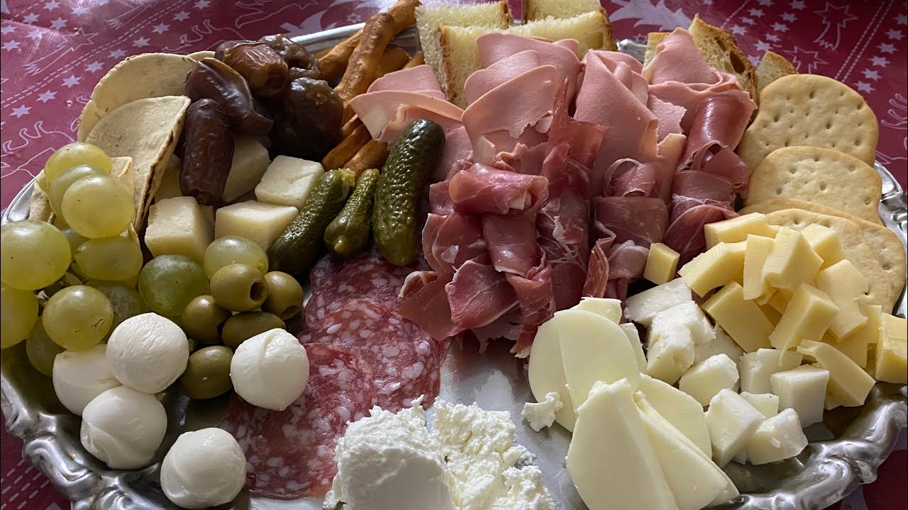 It’s so simple and easy to prepare. All you have to do is buy whatever meat / cured meat / cold cuts , cheeses , bread , nuts ,fruits you want and arrange them beautifully on a serving board.