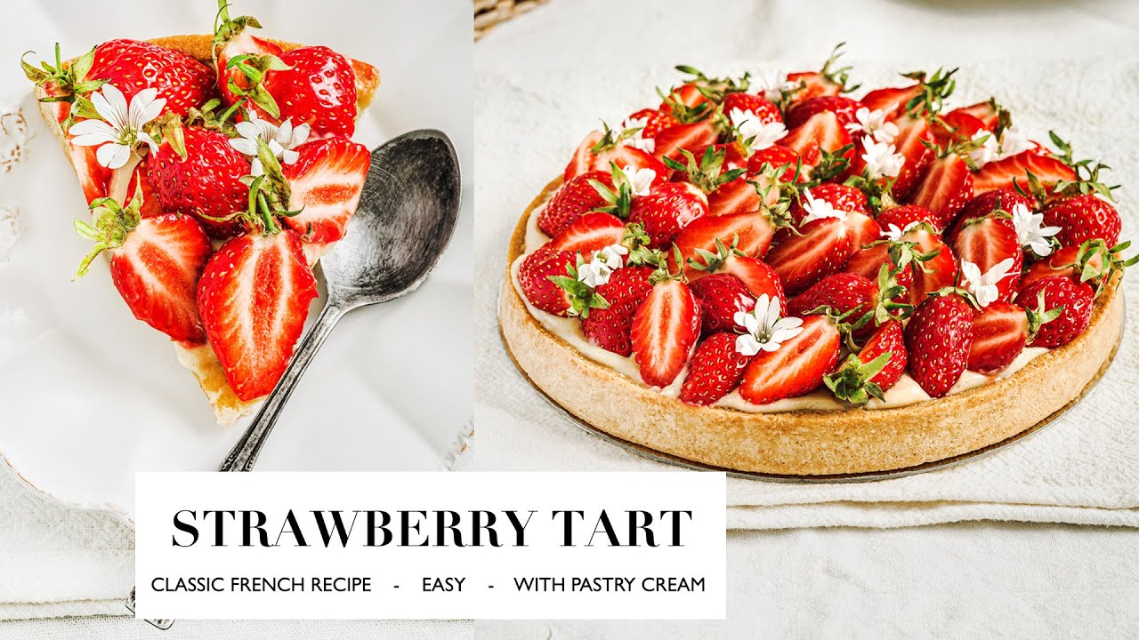 How to make the classic French Strawberry tart recipe. Made with a crispy crust filled with a frangipane (almond cream), a delicious pastry cream and fresh strawberry.