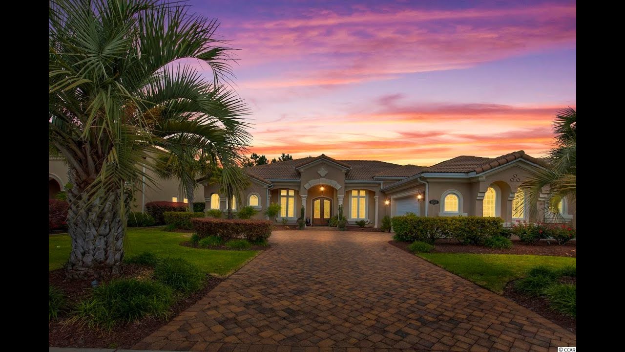 This is the home youve all been waiting for in Grande Dunes Golf Village! You will feel safe in this prestigious gated community with full time security. As you drive over the iconic Grande Dunes Bridge with boaters below, this is a perfect picture of coastal resort living at its best. Your beautiful Mediterranean style home awaits you in the quiet Tuscany Village section. As you walk through the double steel doors, you will be greeted with a beautiful foyer, classic 20 inch tile flooring, high ceilings with crown moldings and majestic columns. The open floor concept has a wet bar and formal dining room to better entertain all your friends and family. The main living room has a coffered ceiling, grand gas log fireplace, ceiling fan, 70 inch TV (conveys) and whole house surround sound system! Your home office/study off foyer has beautiful French doors and wood floors. You will enjoy cooking in your large kitchen with gorgeous granite countertops. Theres plenty of storage with tall 42 inch beautiful cabinets and a spacious pantry. Four large picture windows allow natural light into the breakfast nook. Upgraded Frigidaire stainless steel appliances include a 40 inch gas stove with warmer, an oversized 64 inch side-by-side refrigerator, dishwasher and built-in microwave. Enjoy your screened in porch with 2 ceiling fans and beautiful pavers overlooking your sizable backyard that faces the private golf course. This ranch split floor plan has a Master BR with large his/her custom closets and tray ceiling with mood lighting. Pamper yourself in your Master en suite with tile flooring, 2 separate large vanities boasting marble countertops and around a spa tub, large tile surround shower with glass doors, a private water closet, and makeup vanity. The opposite side of the house has 2 additional bedrooms, 2 baths. There is an extra built-in study adjacent to a spacious laundry room that leads out to a 528 sq ft garage with epoxy flooring and pull-down stairs with attic storage space. The garage also has many storage cabinets that convey. There is a full irrigation system and French drains to nurture the beautiful landscaping including palm trees and rose bushes. All potted plants convey with an auto drip watering system. Landscaping includes up lighting. Paver driveway with sideload garage provides plenty of parking. Your “resident membership” includes the use of the beautiful 25,000 sq ft Ocean Club boasting a huge, heated pool, adult jacuzzi, kids pool, food and bar service, private beach access, free beach chairs and umbrellas, dining services, with club socials and activities. There is also a private membership available to the Members Club which offers socials, golf, and tennis. This community sits along the Intracoastal Waterway on the north end of Myrtle Beach and within minutes to all kinds of restaurants and entertainment. If you have a boat or even prefer to rent one, the Grande Dunes Marina is also conveniently located in the community. (All measurements are approximate and the responsibility of the buyer to confirm. Exterior photos feature a green grass enhancement)
