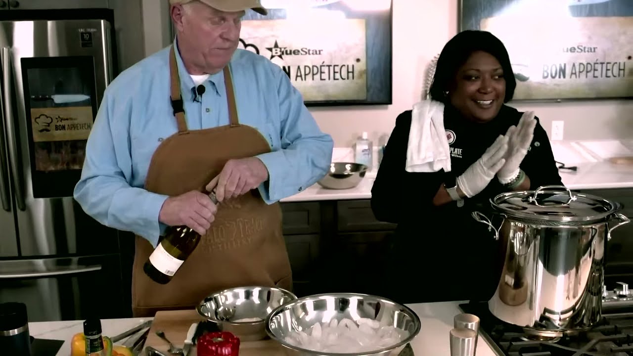 Good food is often better when served with an adult beverage, but you can also incorporate alcohol directly into your cooking, taking advantage of great flavors to give your dishes that extra edge! For this episode, Chef Kymberly Wilbon is joined by BlueStar’s VP of Marketing Mark Fraker. They are making beer-steamed shrimp (with a spicy cocktail and milder mustard sauce), and no-bake bourbon balls. Sit back, have a drink and enjoy!