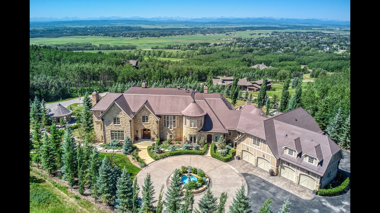 Extraordinary French Chateau 'Terre Blanche', designed by iconic designer Arthur Fishman, offers grand luxurious living for the most discerning buyer and extensive accommodations and unique amenities for extended or multi-generational families. This private, gated estate is strategically perched high atop the ridge on nearly 3 acres featuring beautiful lush gardens, magnificent landscaping, extensive outdoor gathering space and the ultimate panoramic Rocky Mountain views. This architectural masterpiece boasts over 16,000 sq. ft across 4 levels of exquisite European craftsmanship and refined sophistication, inspired by estates in the hillsides of France and showcasing an unparalleled collection of antiques and originals. 'Terre Blanche' features 10 bedrooms, including Four Seasons inspired guest, nanny or housekeepers wing – all complete with full ensuite bathrooms and walk-in closets, attached 6-car garage, two staircases and an elevator servicing all levels. Second to none amenities include a half-court basketball gymnasium and viewing lounge above, spectacular oval custom panelled library flanked by his and hers offices, ventilated cigar room, temperature controlled wine cellar & tasting room, fitness room (10th bedroom), caterer's entrance complete with butler's pantry & walk-in commercial cooler, art deco home theatre, games room & bar, and enclosed gazebo for all season enjoyment of the spectacular mountain views. The primary suite is reminiscent of a five-star hotel and boasts it's own lounge area, coffee/wet bar, west facing balcony to enjoy the views and sunsets, extravagant his and hers ensuites and spacious dressing rooms. Multiple outdoor spaces including a private courtyard which is ideal for dining and grand entertaining – featuring a double-sided fireplace with built-in seating and a heated, self-contained outdoor kitchen with built-in BBQ and La Cornue Rotisserie. Meeting the new standard of luxury amenities for today's buyers who want more outdoor space, multiple home offices, fitness & wellness facilities, and spacious living quarters, 'Terre Blanche' is the perfect family estate – completely turn-key and fully furnished for those who seek the exceptional. Located just 30 minutes west of downtown Calgary, close proximity to popular west side amenities and private schools and less than one hour to Canmore & Banff.